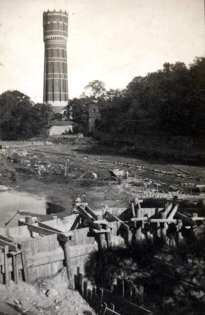 En arkeologisk undersökning i samband med att Systraströmmen var tömd på vatten. I bakgrunden syns Gamla vattentornet.