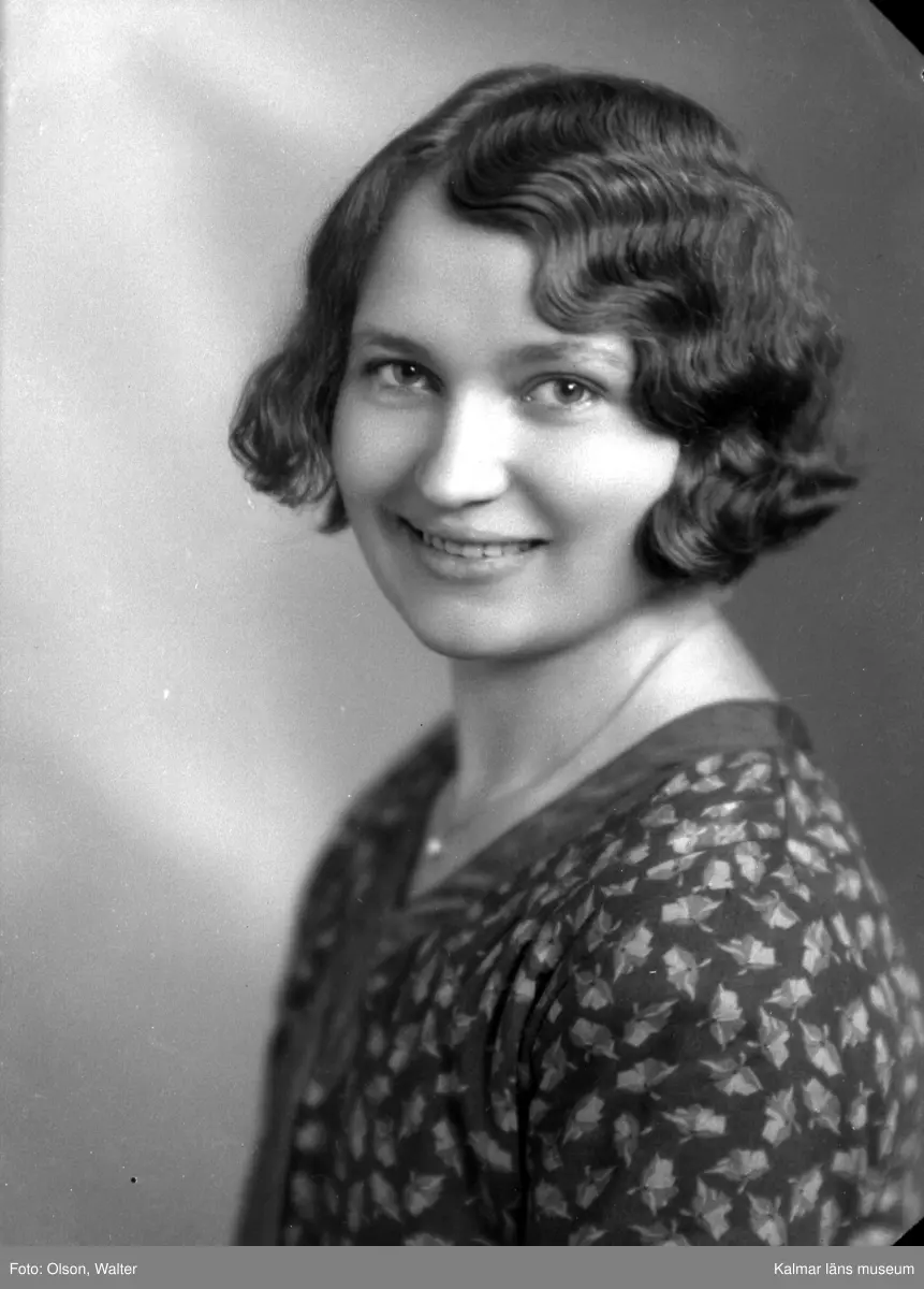 Ateljébild på en kvinna med halsband och hänge. Beställare till bilden: Märta Gustavsson ifrån Kalmar.