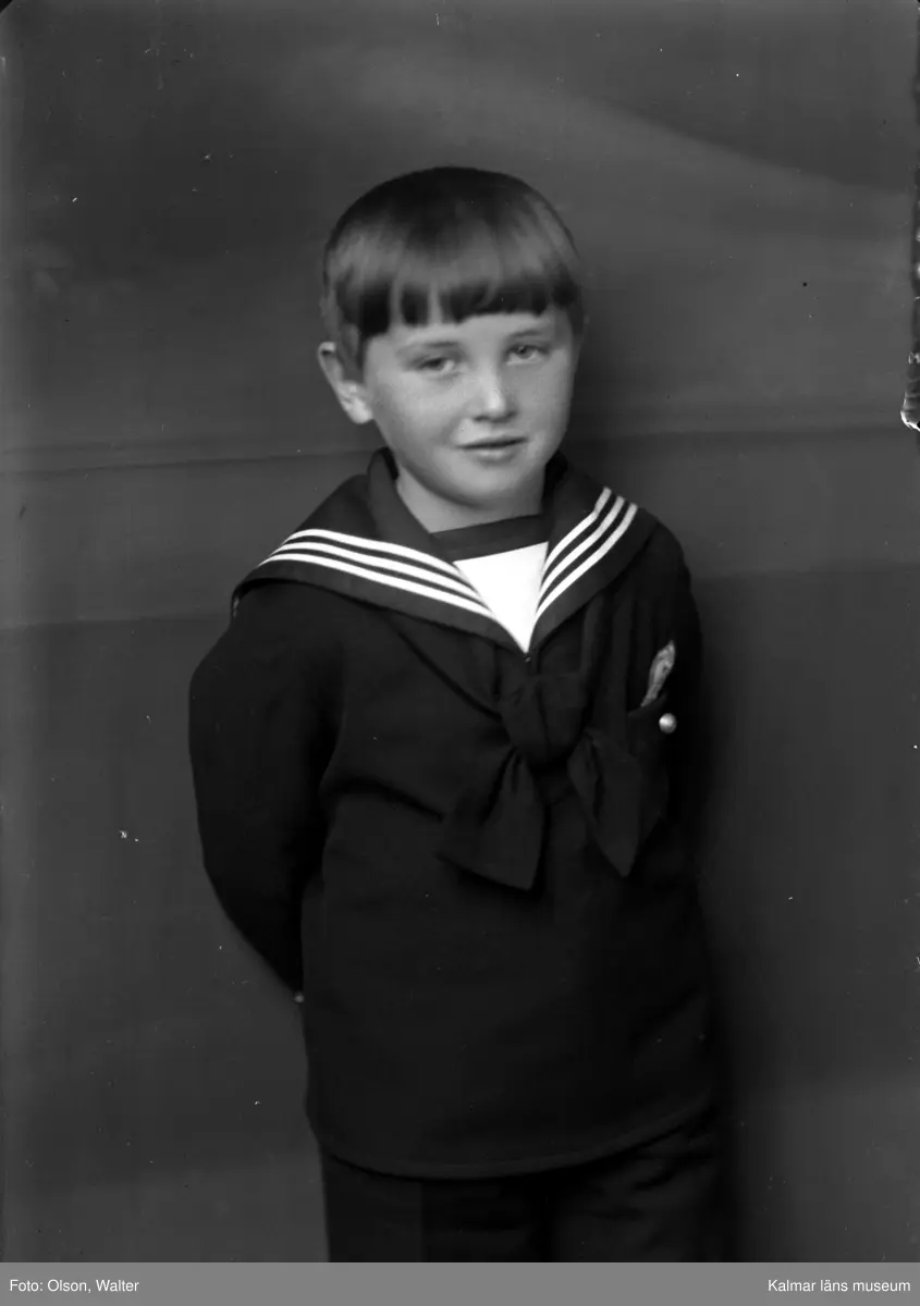 Ateljébild på en pojke i sjömansblus. Beställare till bilden: Fru Lilian Andersson ifrån Ölands Skogsby.