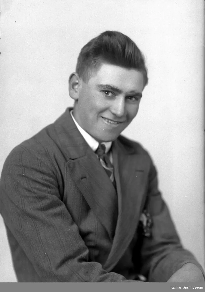 Man i kostym. Bilden ska användas som pass. Beställare till bilden: Gunnar Andersson ifrån Norra Sandby i Gårdby.