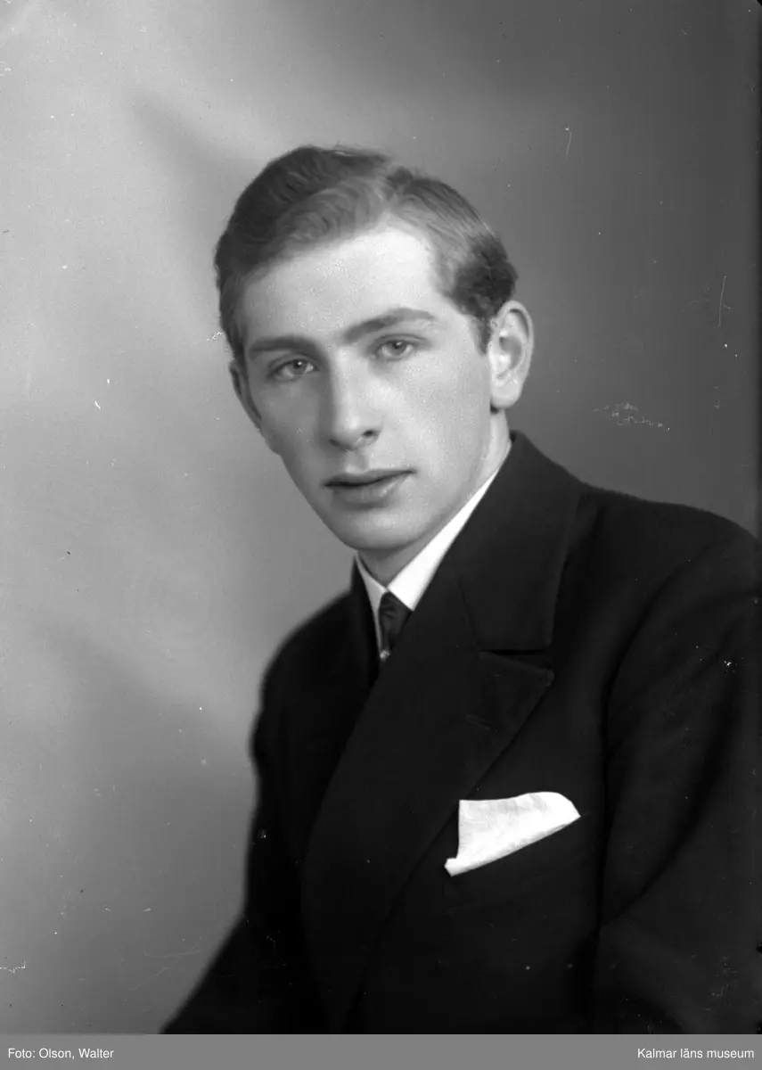 Ateljébild på en man i kostym. Beställare till bilden: Kandidat T Lilja ifrån Kalmar.