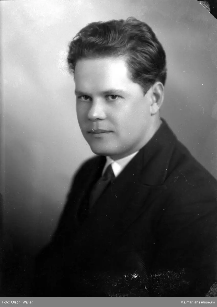 Ateljébild på en man i slips. Beställare till bilden: Nils Olofsson ifrån Kalmar.