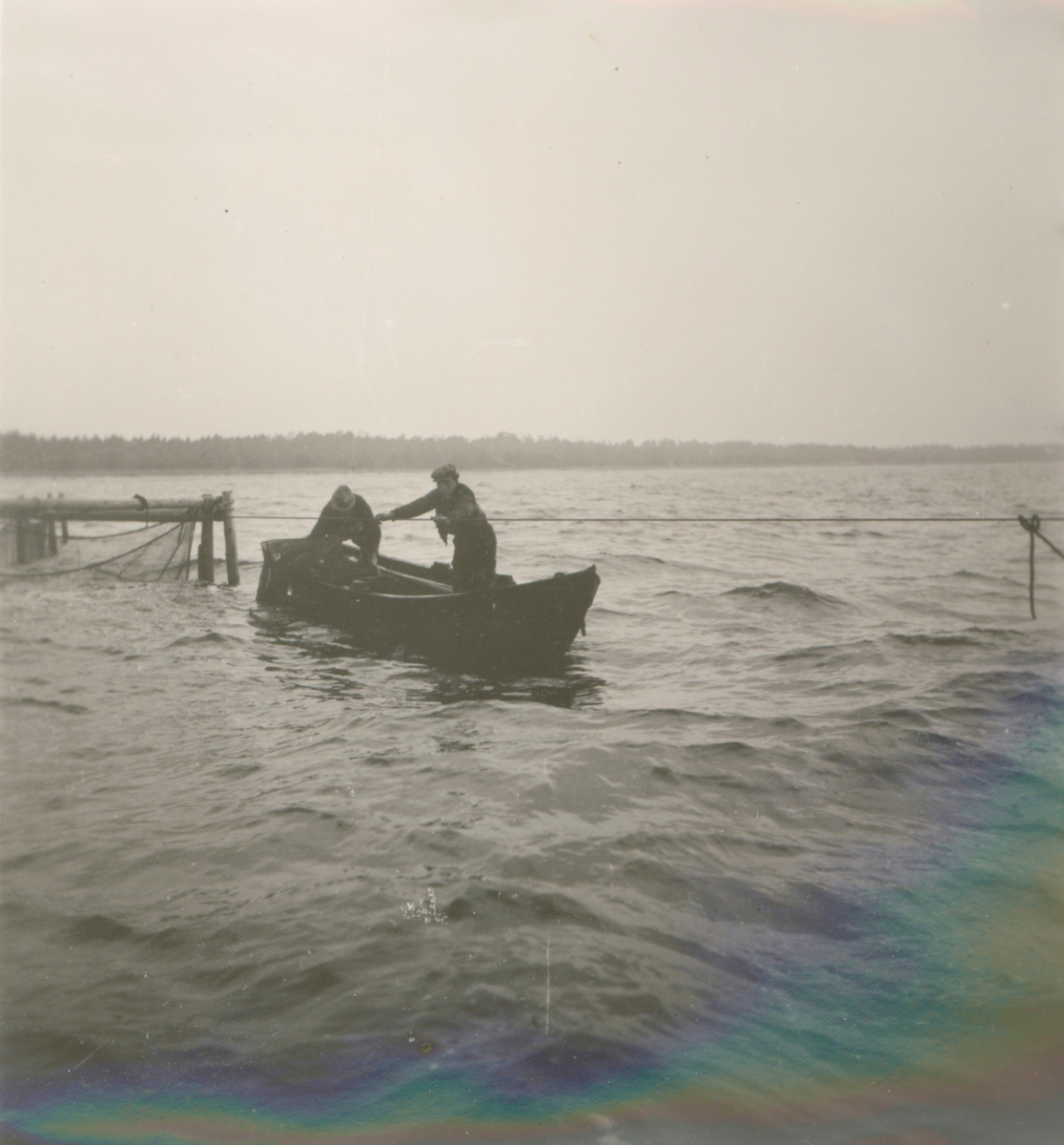 Bild ifrån Böda socken på Öland. Två fiskare i en eka.