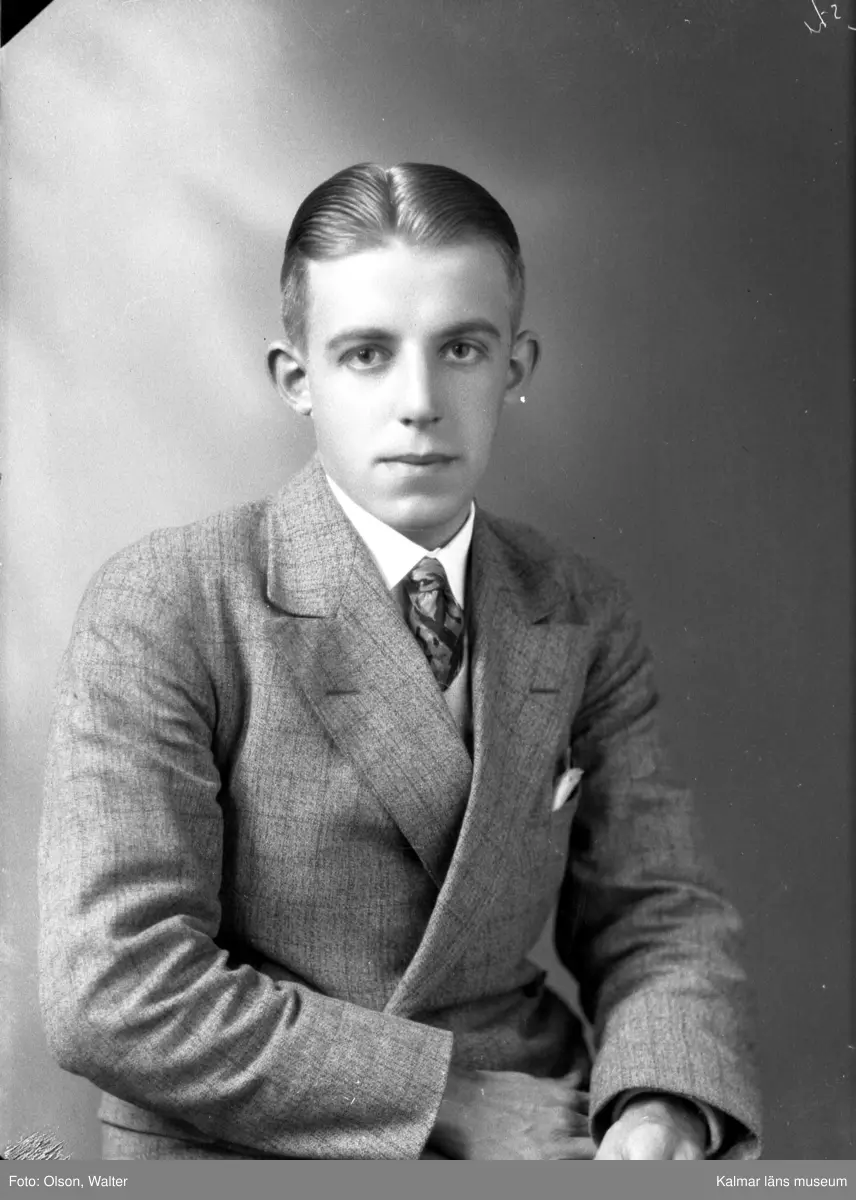 Ateljébild på en man i kostym, väst och slips. Beställare till bilden: Gösta Rytte ifrån Ålem.