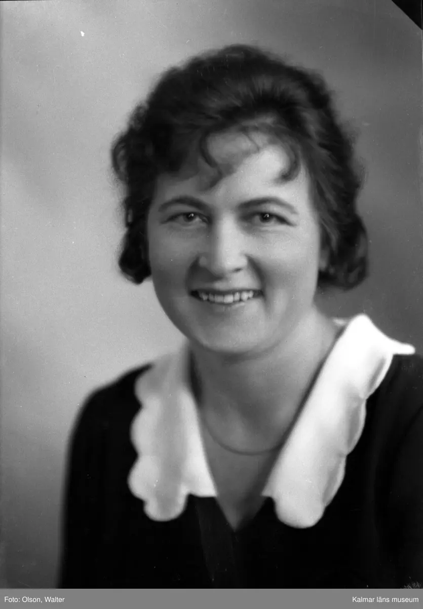 Ateljébild på en kvinna i klänning och krage. Beställare till bilden: Terése Sundberg ifrån Teatern i Kalmar.