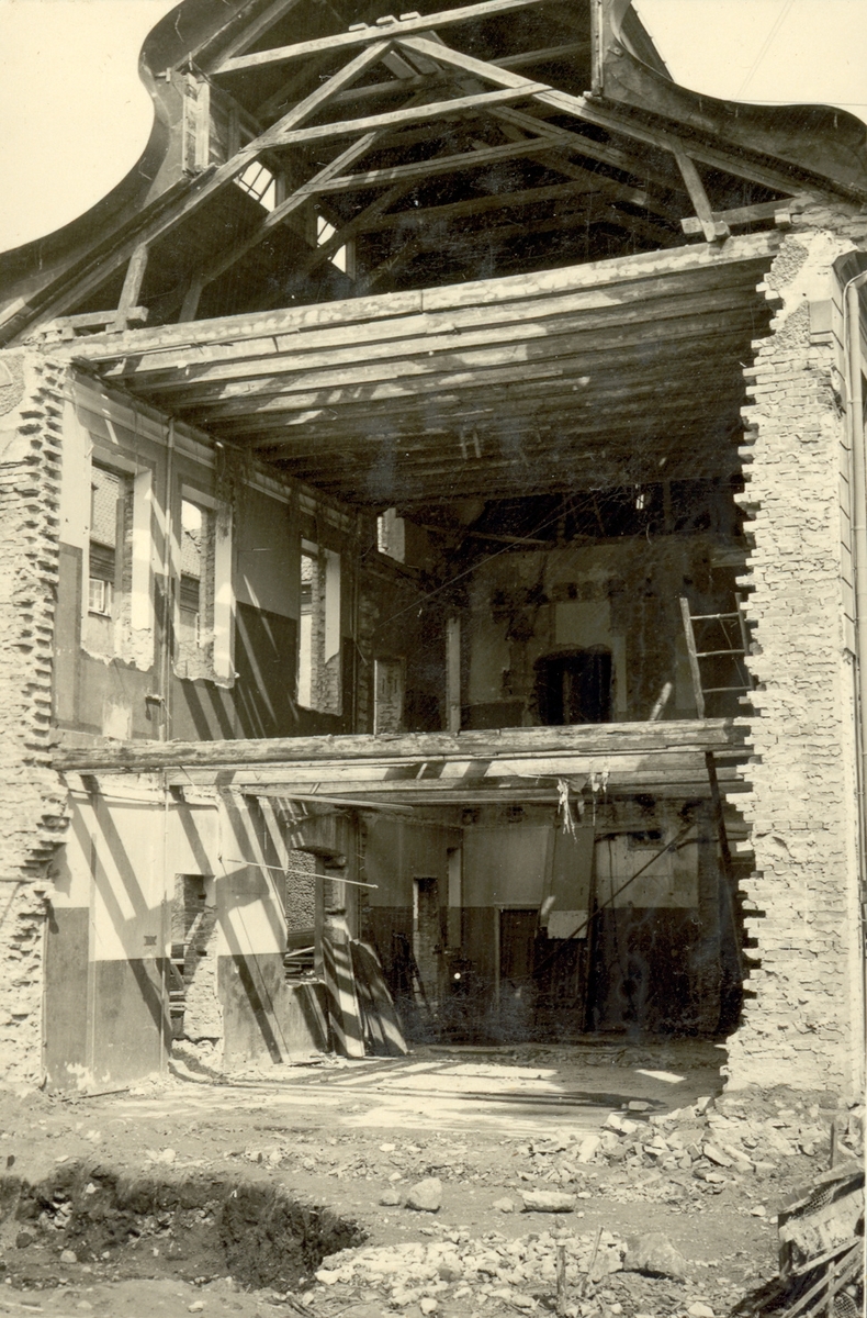 Rivning av en byggnad med säteritak på Södra Långgatan.