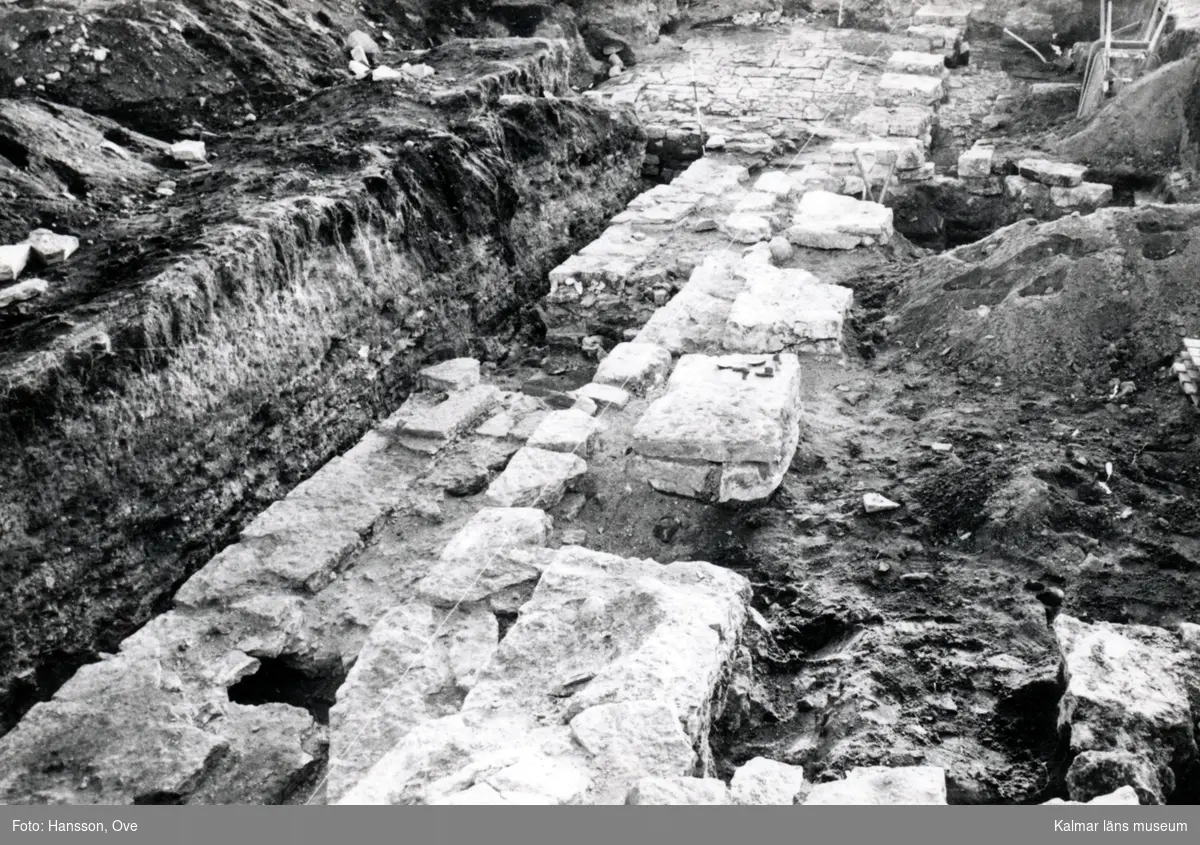 Utgrävning på Kalmar slott. Raden av plintar sedd mot söder.