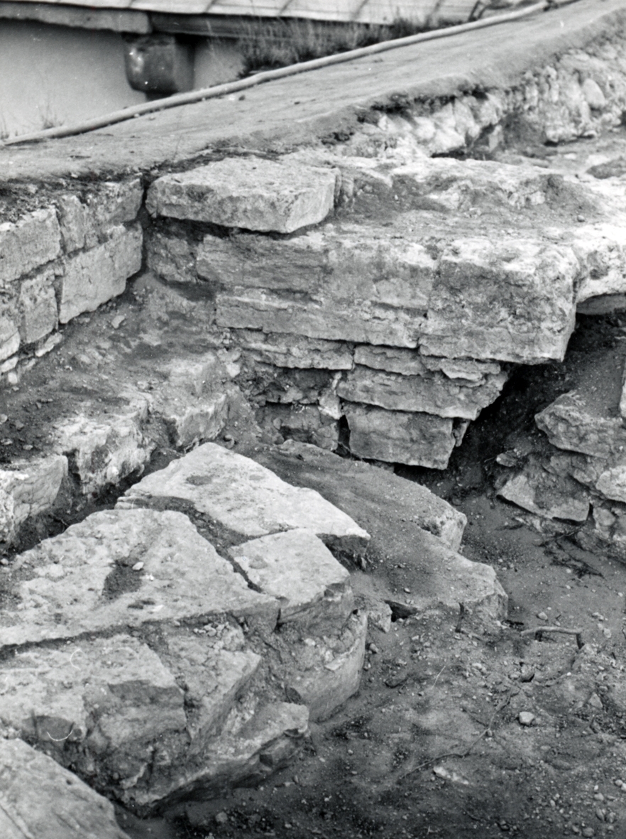 Utgrävning på Kalmar slott. Den äldre muren intill södra murens norra kant Rapporten: Krutkammaren, vallgraven, västra vallen och brunnar.