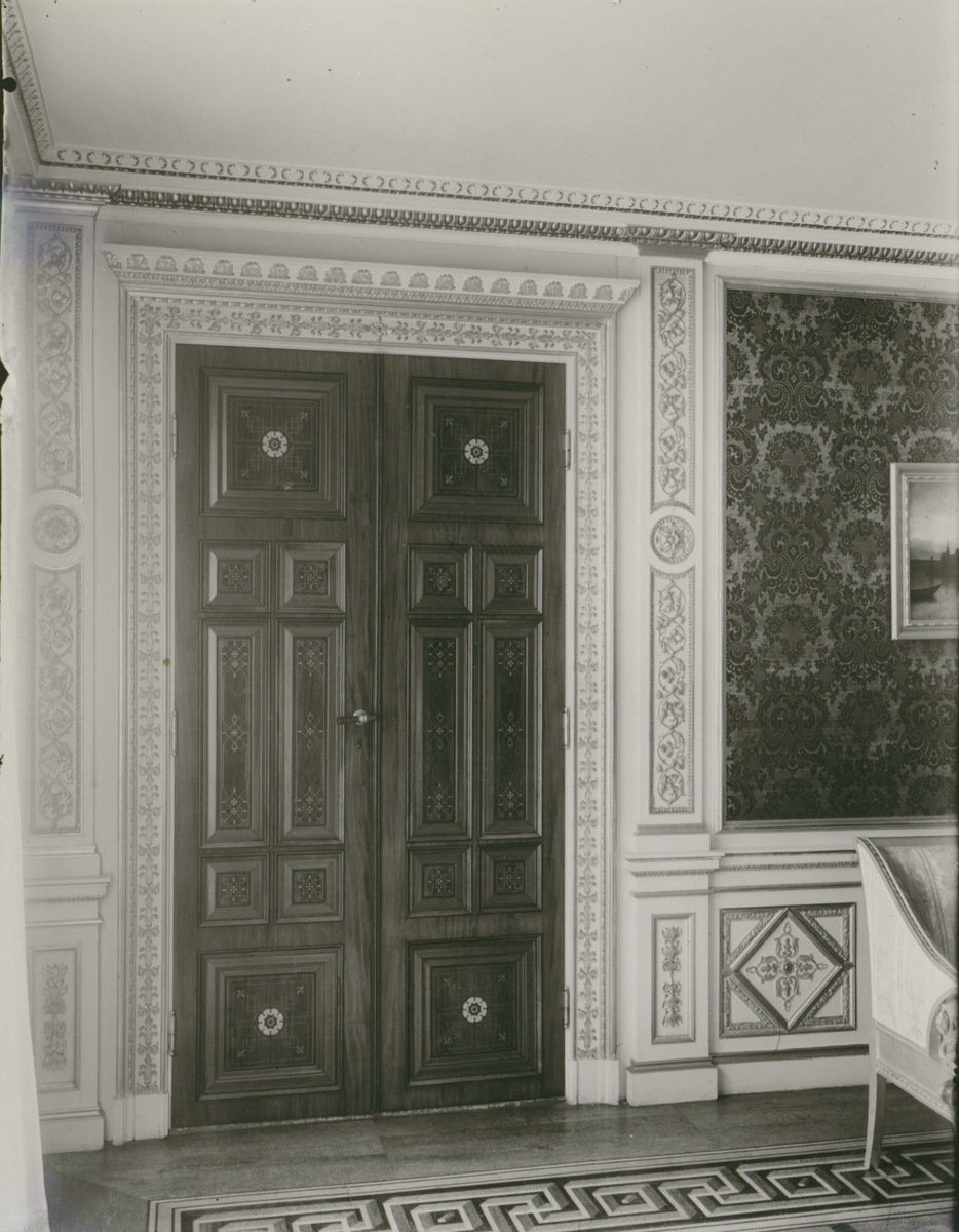 Rumsinteriörsbild med en dörr i en bruksherrgård i Överum.