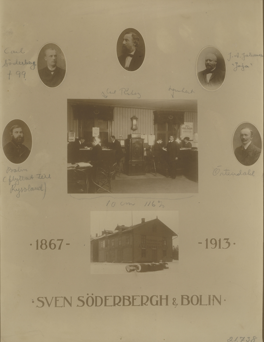 Kontorsmiljö och porträtt av personalen på Sven Söderbergh & Bolin.