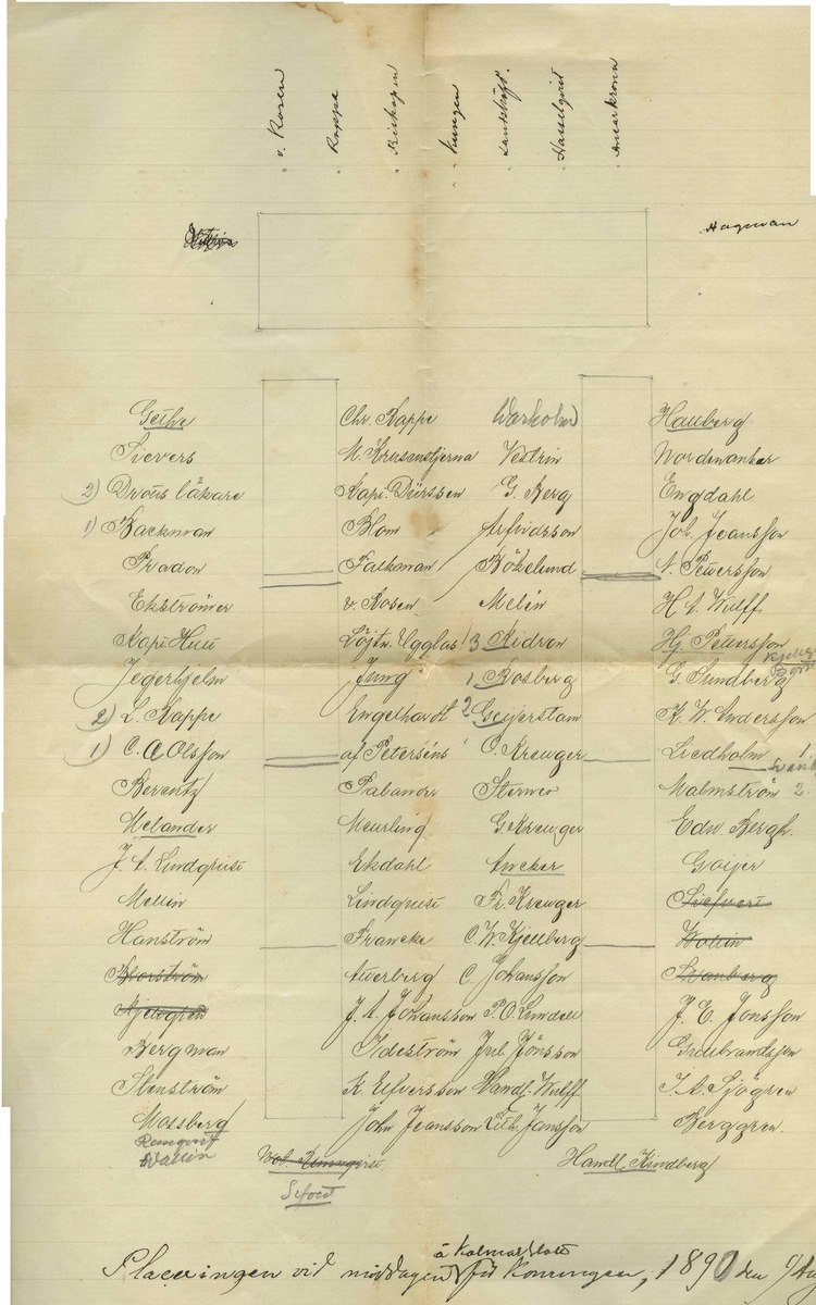 En placeringslista för en kungamiddag.