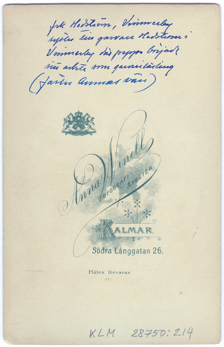 Fröken Hedström i Vimmerby syster till garvare Hedström i Vimmerby där pappa började sitt arbete som garvarelärling(faster Annas vän).