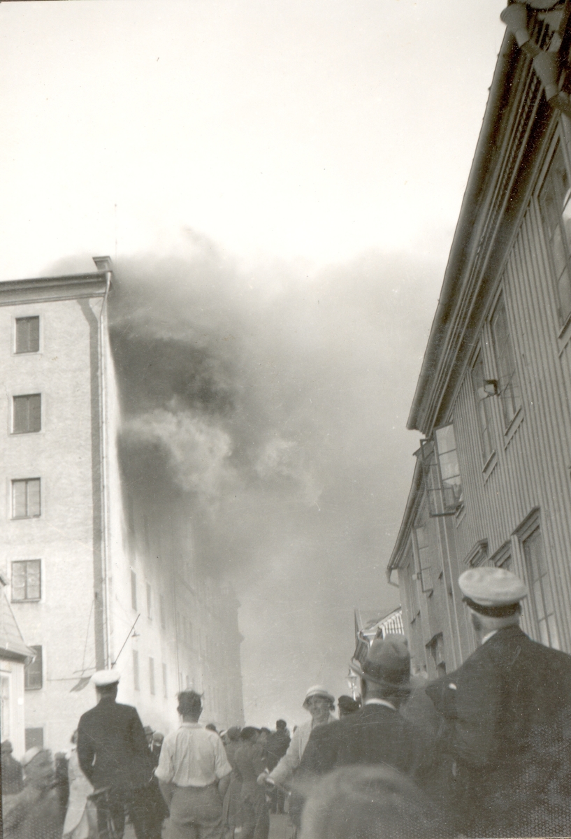Ångkvarnsbranden 1935-07-06. Folksamling på Proviantgatan.