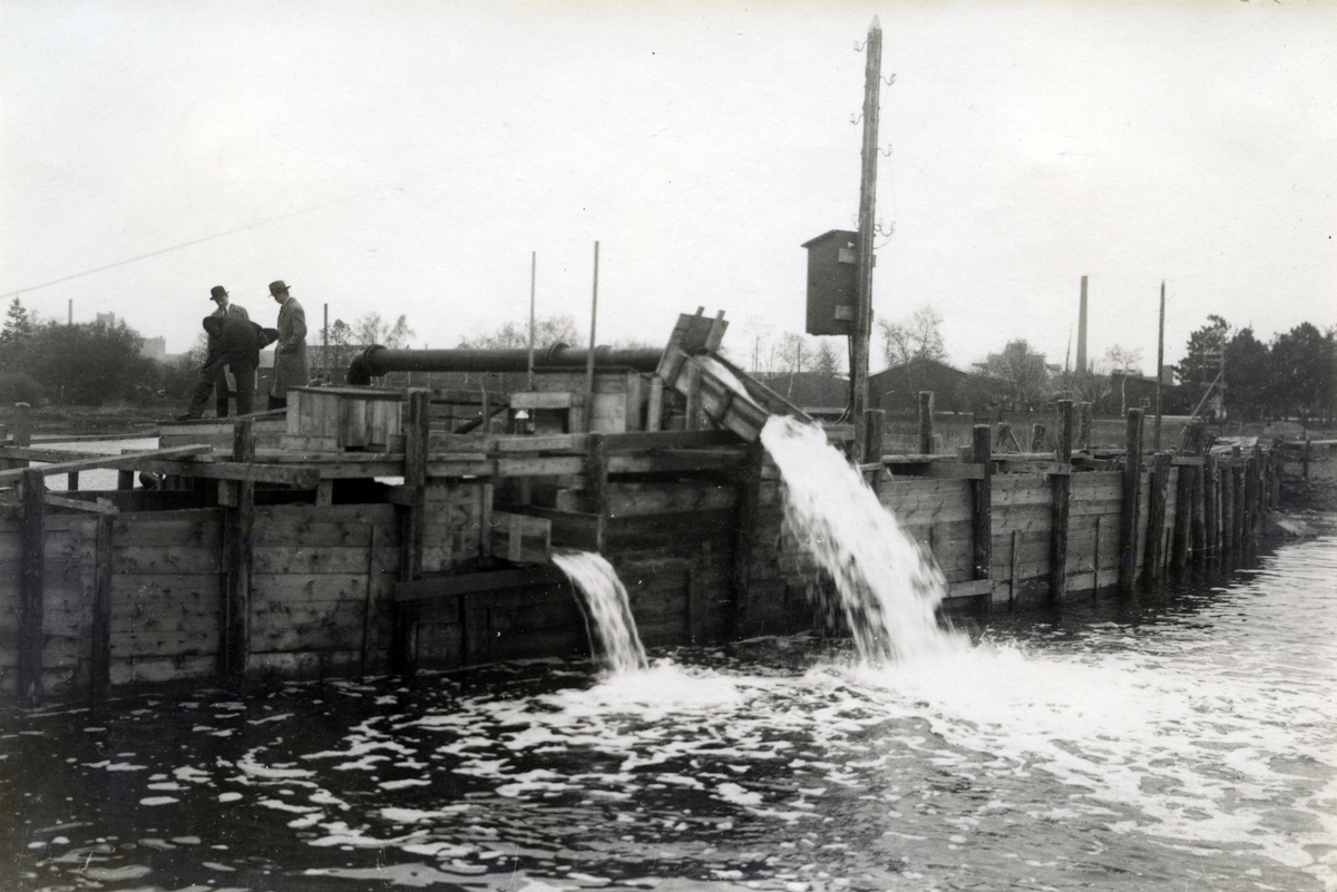 Slottsfjärden i Kalmar töms på vatten inför den arkeologiska utgrävningen 1932-1934.