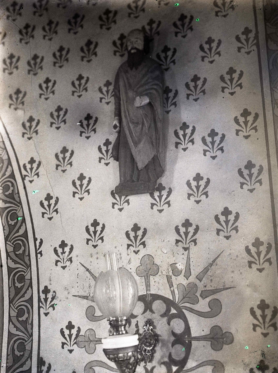 En apostel, vägglampa och väggmålningar i Voxtorp.