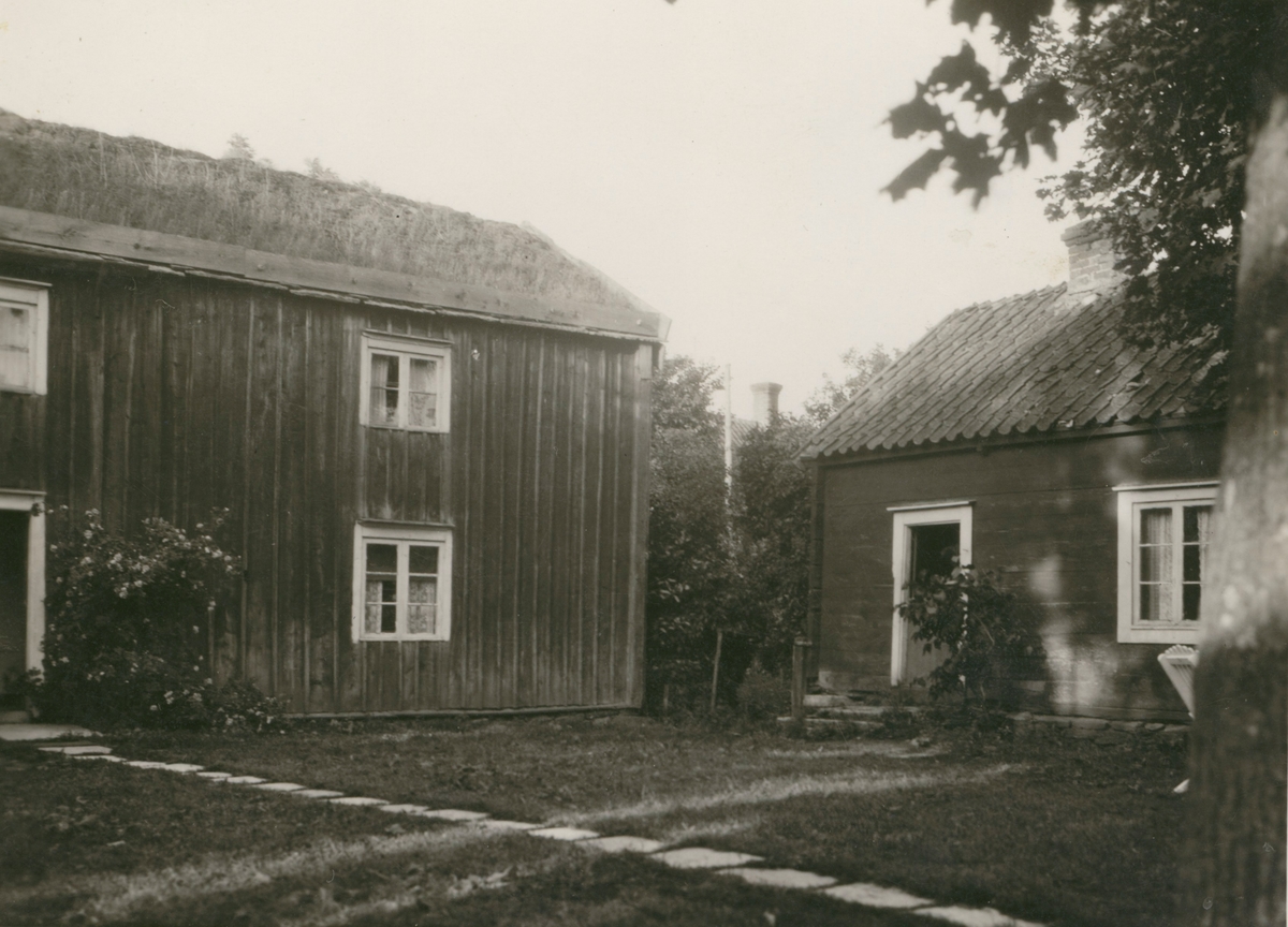 Alvedsjö nr. 2. Boningshus och "lillbyggning" till vänster byggd 1853.