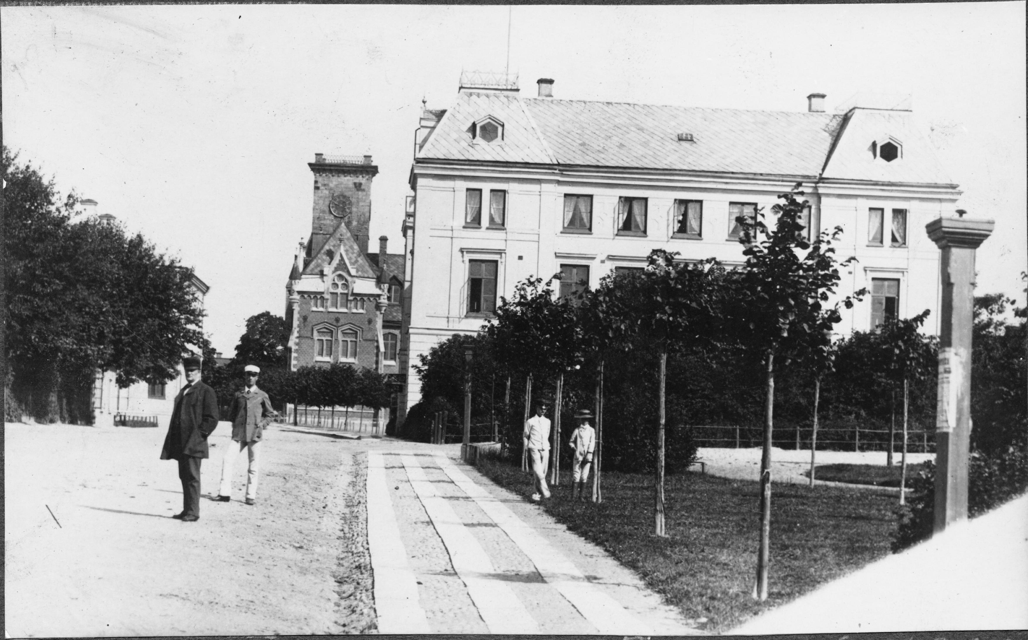 Kyrkan och dess omgivning från söder. Foto från omkring 1880.