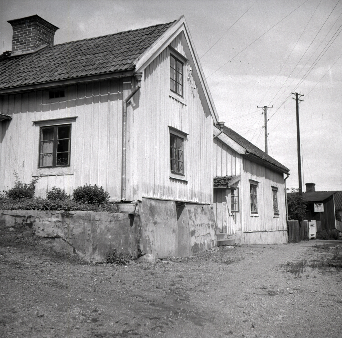 Vy från Figeholm, bostadshus med träpanel och sadeltak.