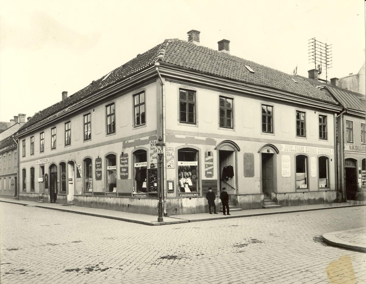 Kv. Apotekaren N:o 1 med Gunnar Svenssons juvelerarbutik och Fridholms kläder.