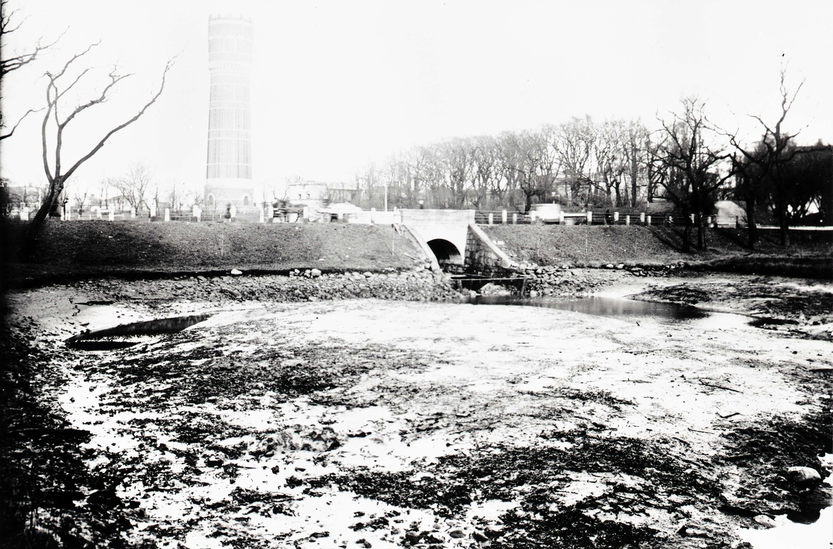 Tömning av vattnet i samband med Slottsfjärdens och Systraströmmens utgrävning.