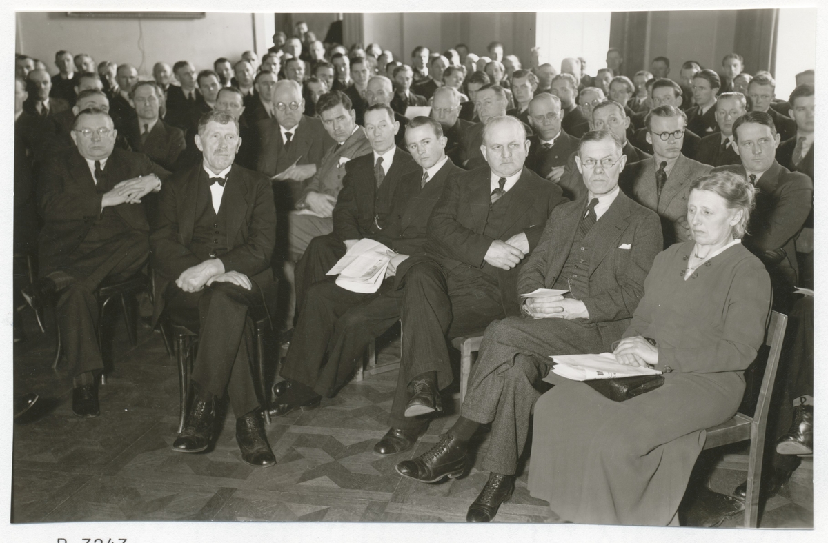 Längst till vänster, första raden direktör Carlsson, Kalmar läns slakterier. Från höger fru Petterqvist, Smedby, agronom Broman, Kalmar, riksdagsman Jonsson?, Läckeby. Andra raden från höger agronom Jönsson, Barkestorp, Smedby och lantmästare Holmqvist, Läckeby. 1940-talet.