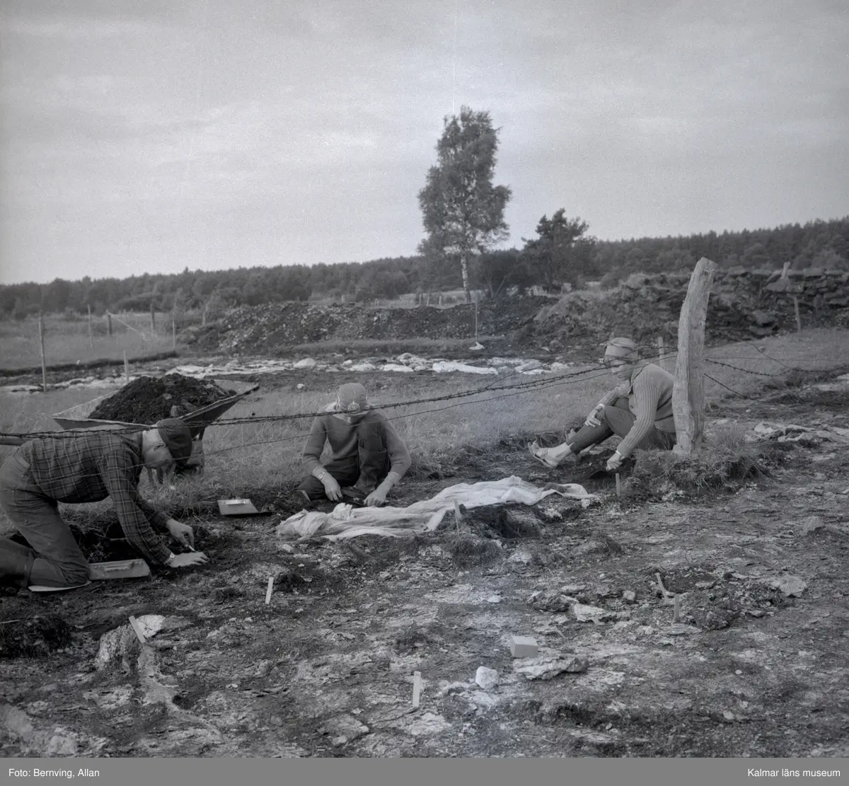 Margareta Beskow vid Skedemosse. Gör en arkeologisk utgrävning.