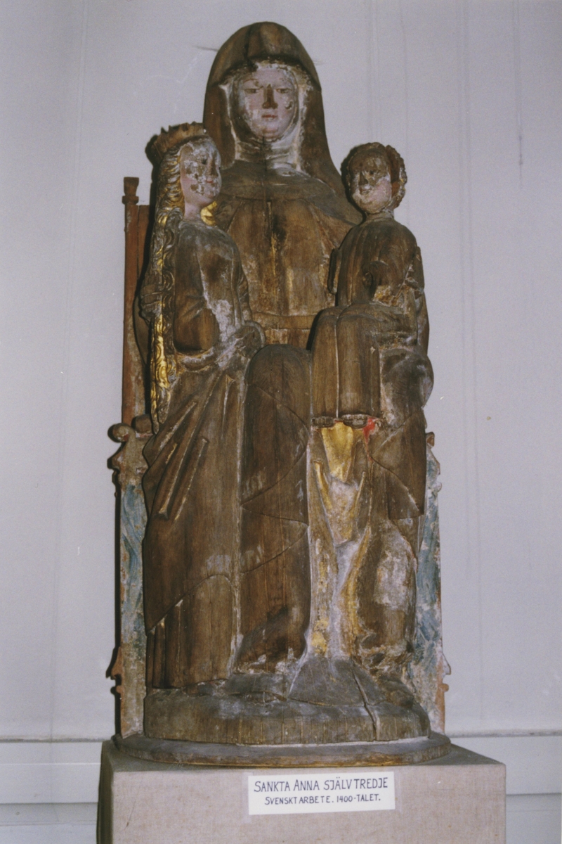 Sankta Anna själv tredje som träskulptur i Dalhems kyrka.