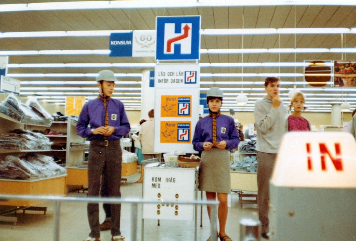 Information om högertrafikomläggningen -67 i Domusvaruhuset, i Kalmar.