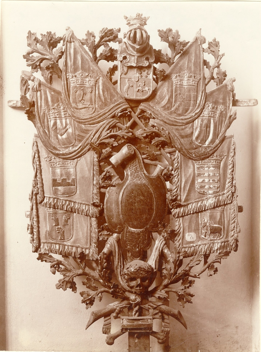 Landshövding Bleckert Wachtmeisters anvapen: Fädernet. 1702. I Kalmar domkyrka.