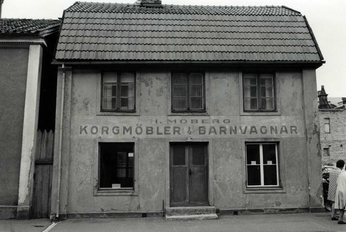 H. Moberg, korgmöbler & barnvagnar, fasaden mot Fiskaregatan.