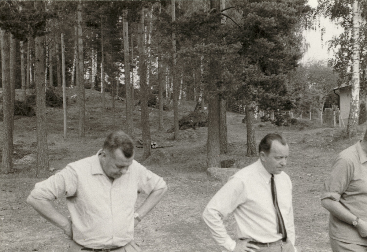 Tre personer vid Lunds kulle. En fornlämning finns på platsen.