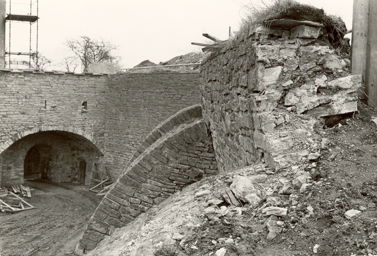 Del av befästningsverket med tunnvalv synliga på Kalmar slott.