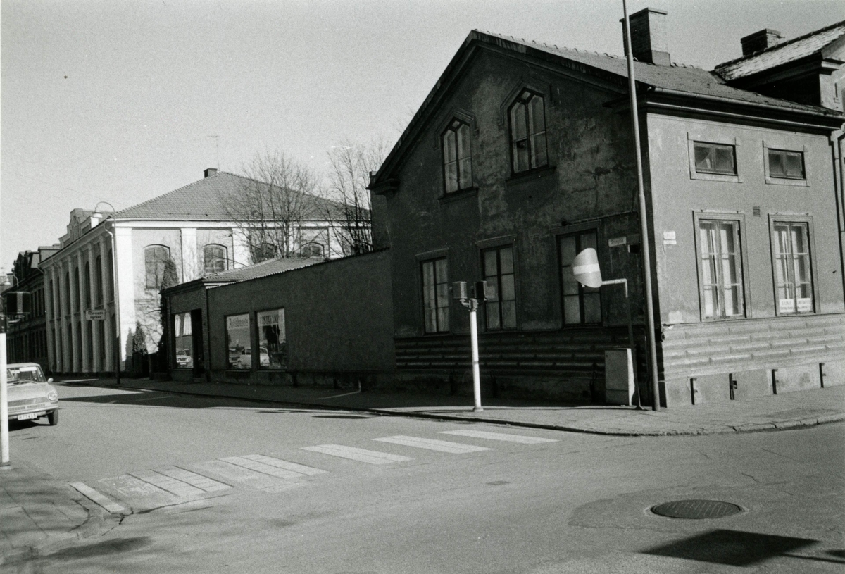 En missionskyrka och butiksbyggnad i kvarter Tenngjutaren 1 och 2. Strömgatan 2, 4. Från Larmgatan. Båda husen numera rivna.