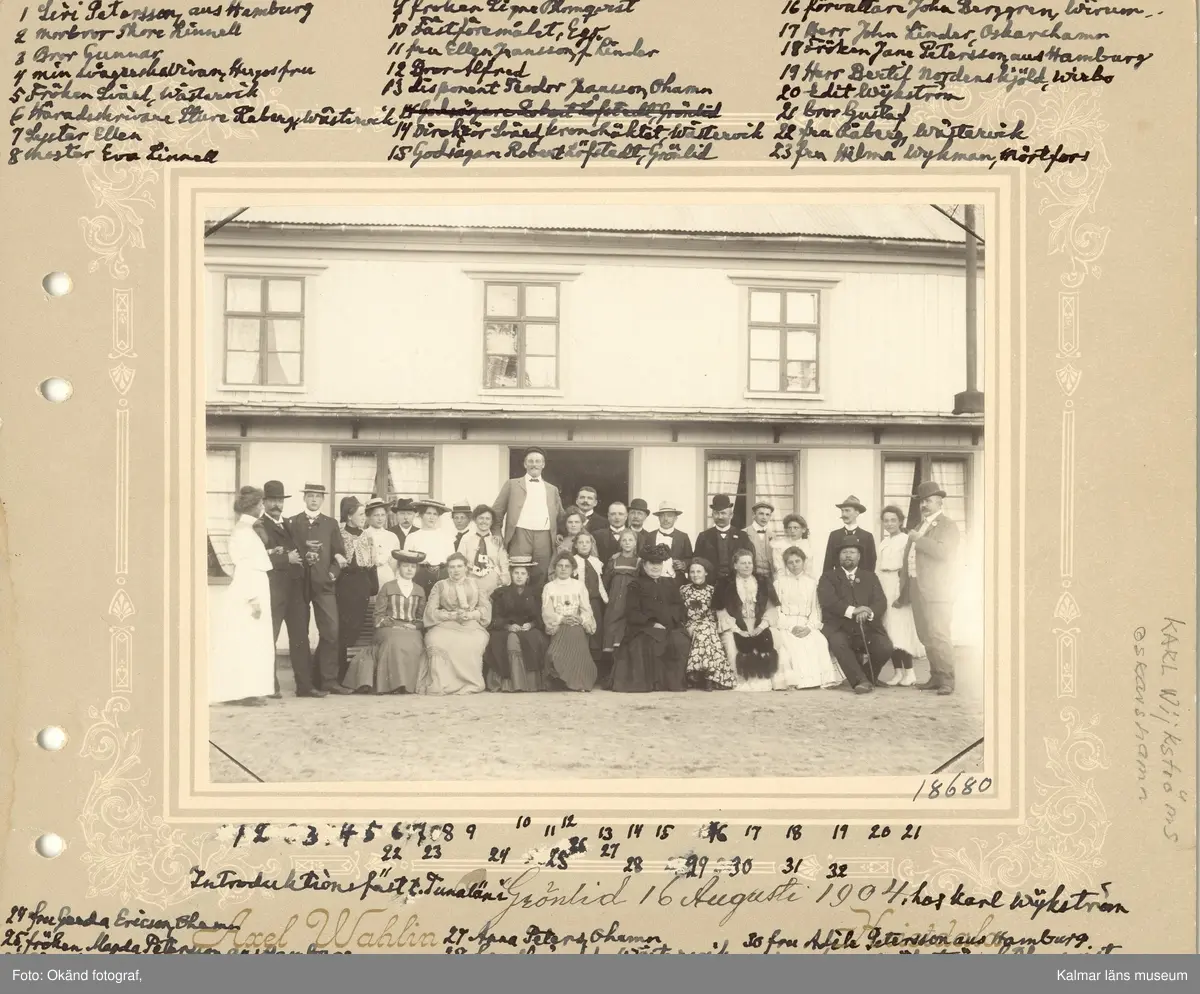 Påskrift i kanten: Karl Wijkströms, Oskarshamn. Wijkströms förteckning över gästerna finns på nästa flik.