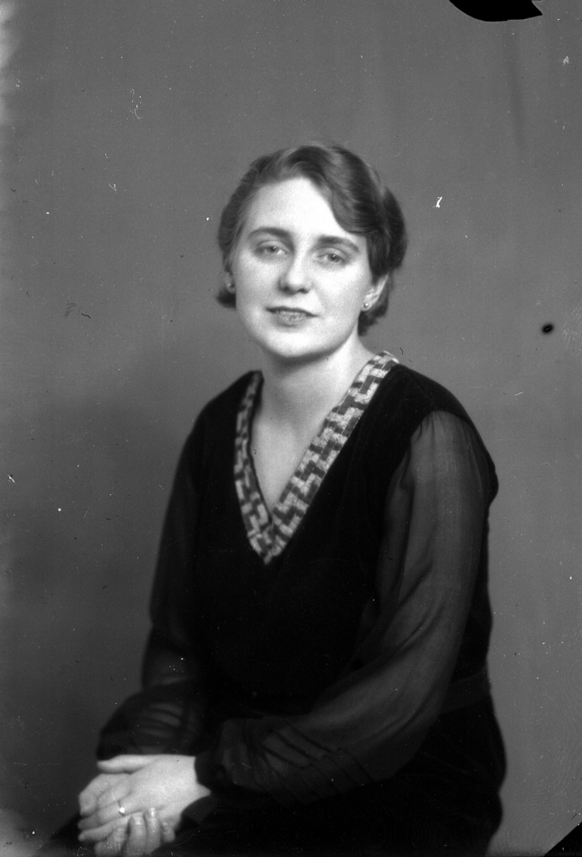 Ateljébild på en kvinna. Enligt Walter Olsons journal är bilden beställd av fröken G Andersson ifrån Hotel Witt.