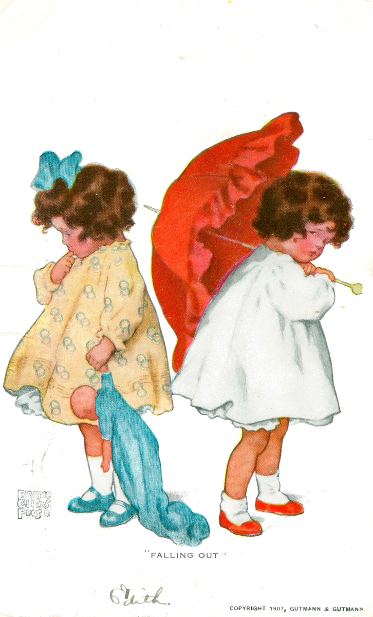 Ett påskkort till Karin Andersson, Bremergatan, Kalmar. Daterat den 6/4 1911 från kusin Edith.