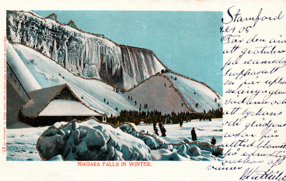 Motivet på framsidan föreställer "Niagara Falls in winter."