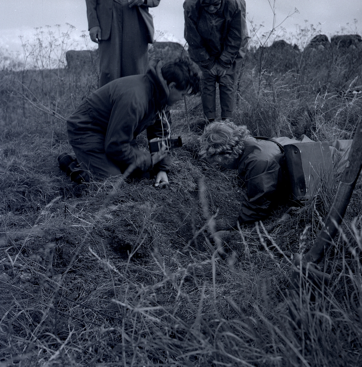Antikvarie Ulf Erik Hagberg gör en arkeologisk undersökning i Kåreholm, juli 1962.