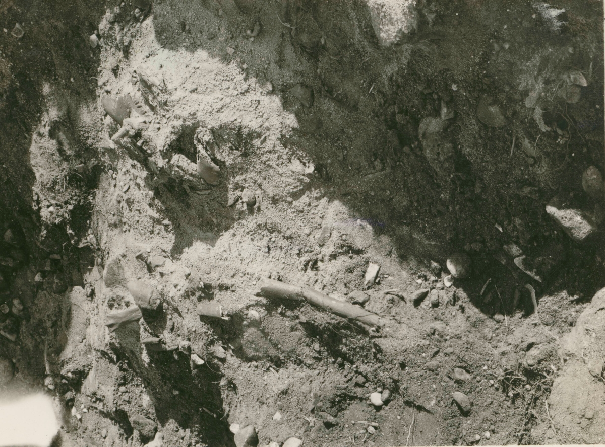 Hundskelett i sydvästra delen av båtgraven.