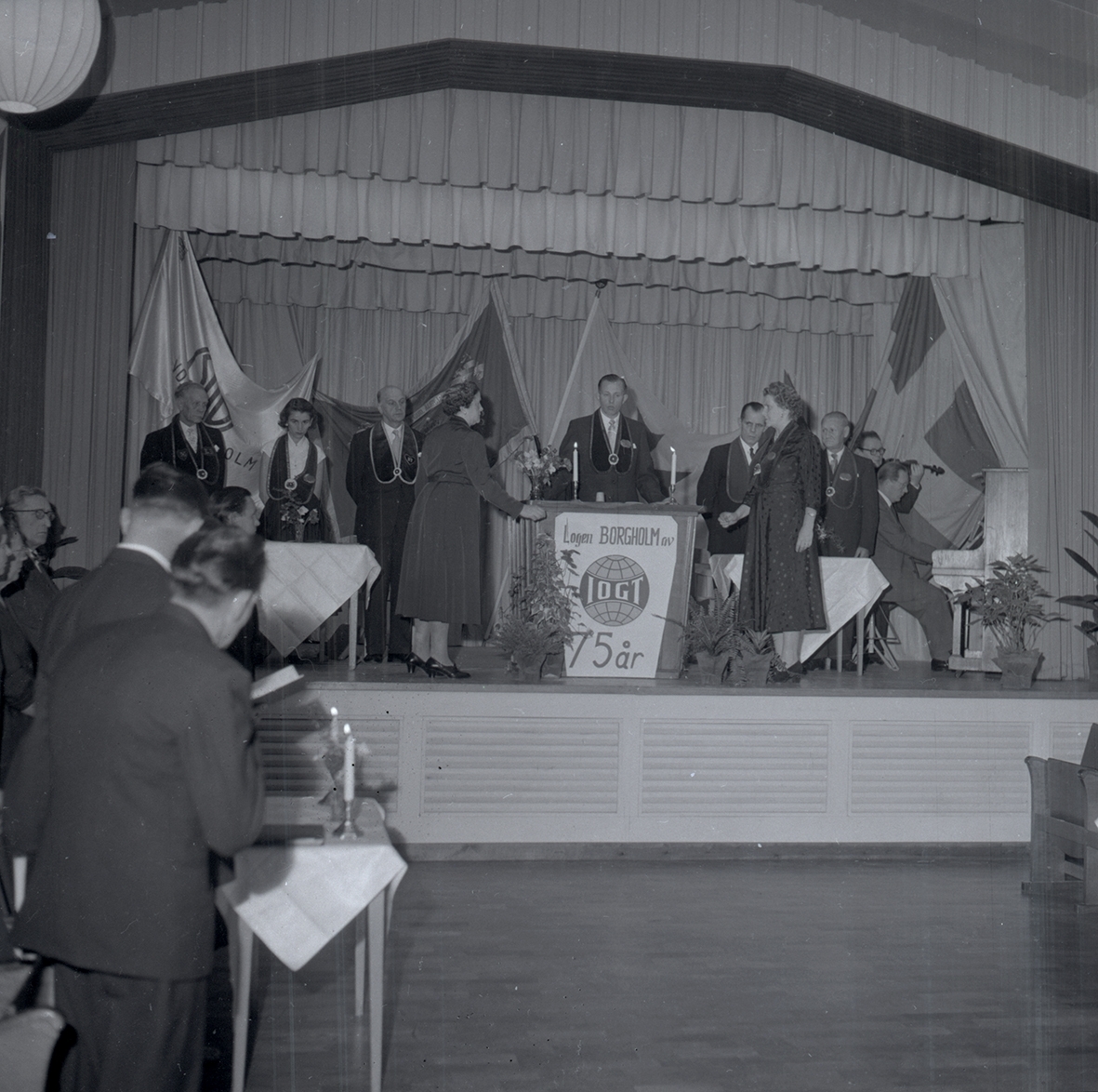 Invigning av lokalen. Kvinna som håller tal. IOGT-logen 75 år den 16/11 -57.