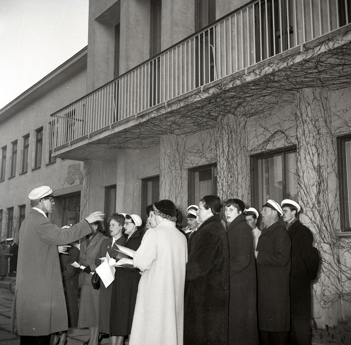 Första majfirande i Borgholm. Kör sjunger framför stadshuset.