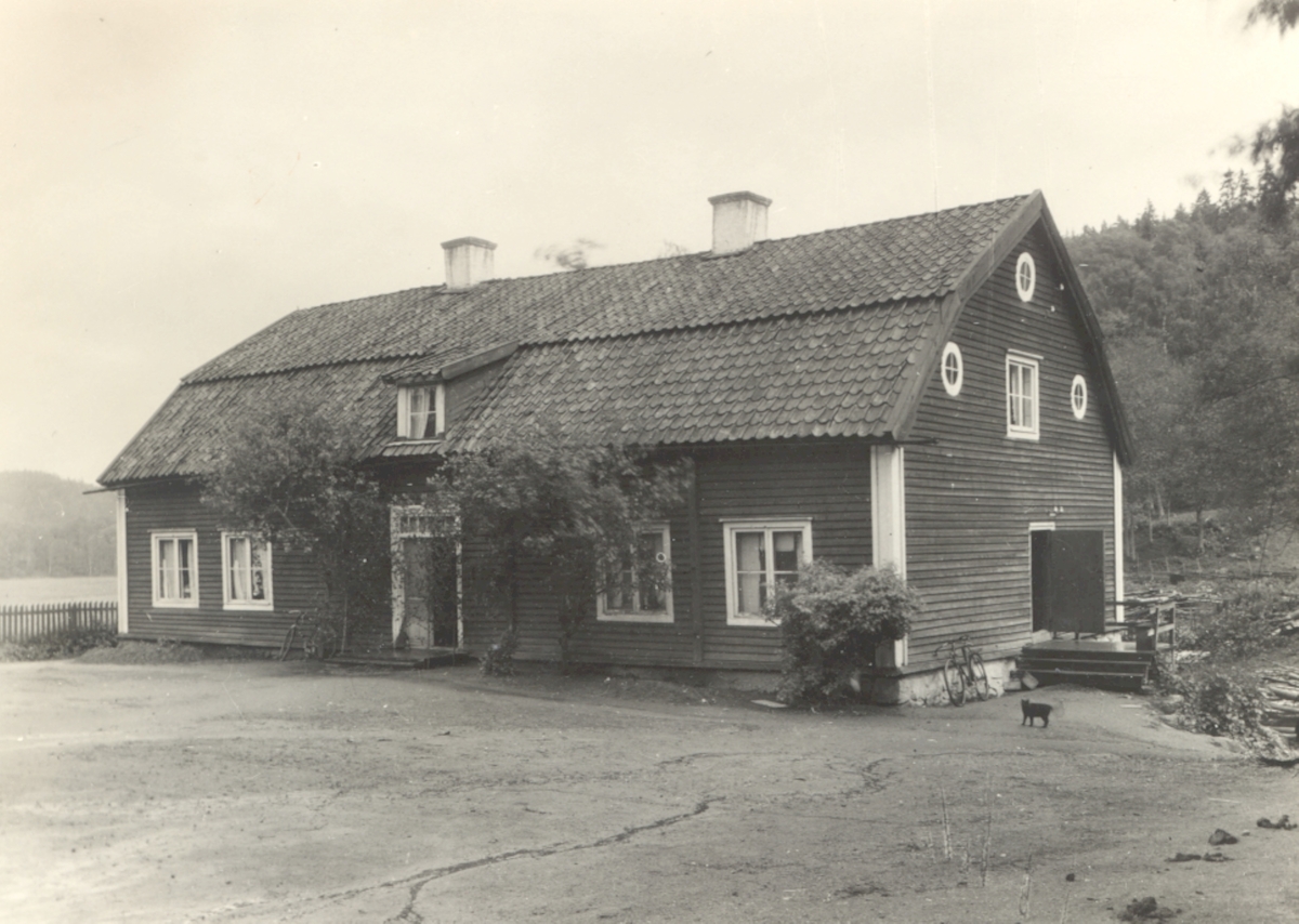 Larum i Dalhem. Huvudbyggnaden, sexdelad plan. Beboddes av två familjer varför salen delats mitt itu.