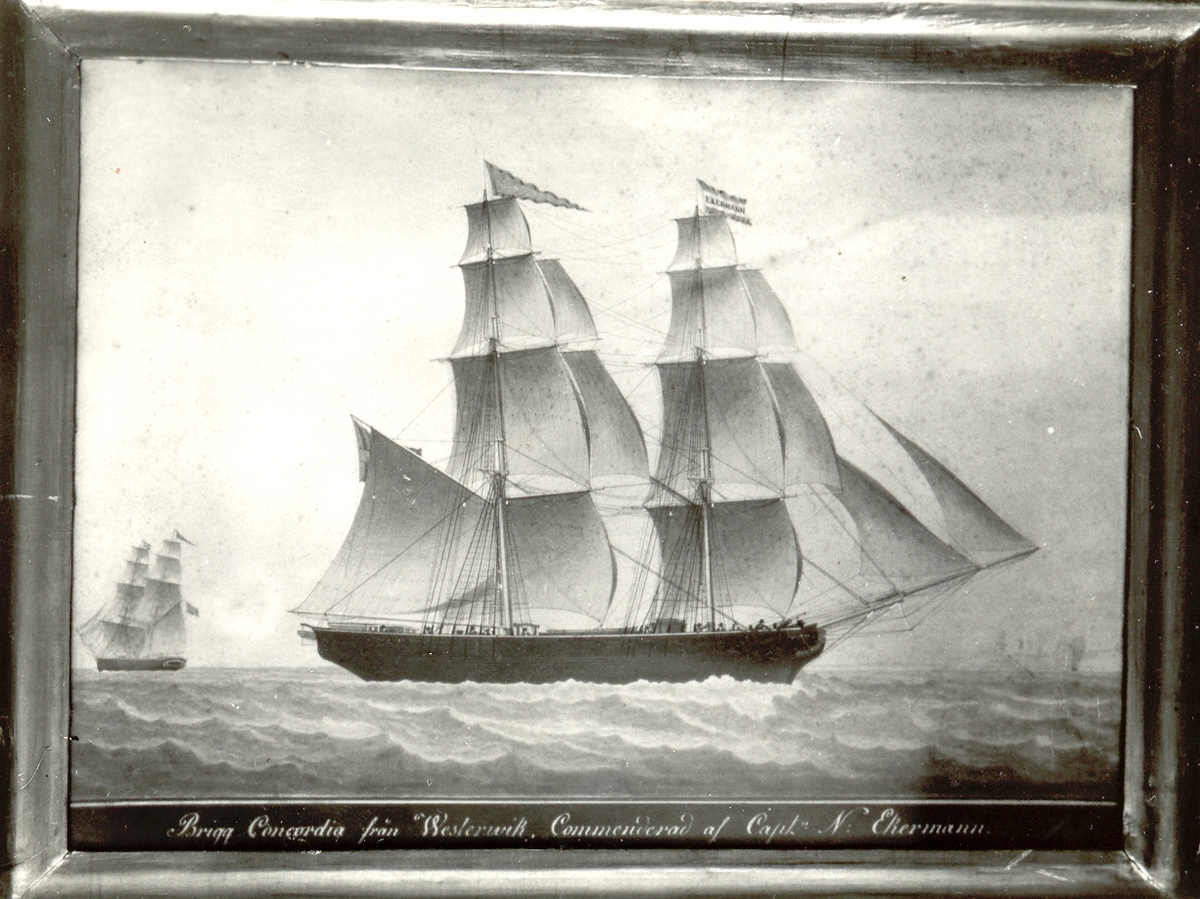 Akvarellmålning föreställande briggen Concordia från Västervik.
