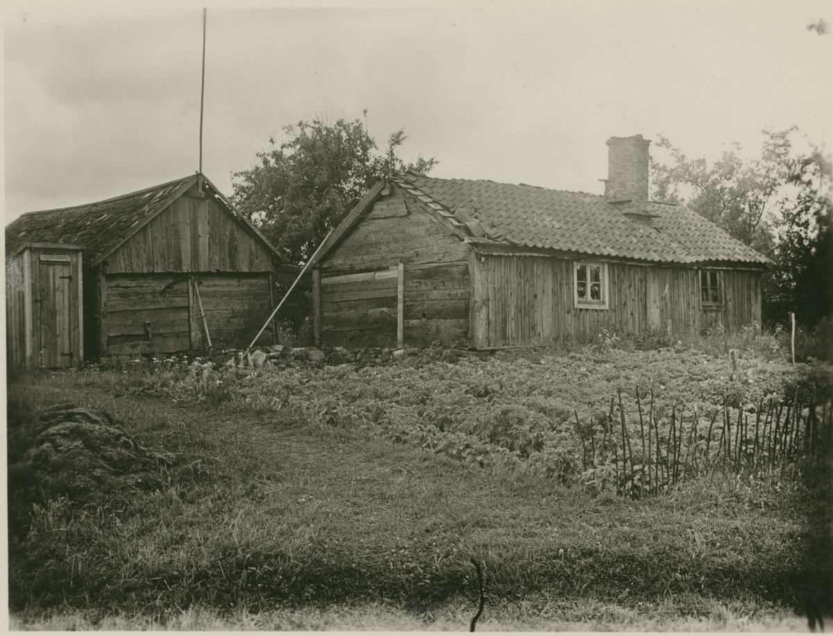 Torpställe vid Runsbäcksgatan mot Färjestaden. Skorsten med stora droppflisor. Bålastuga (ryggåsstuga).