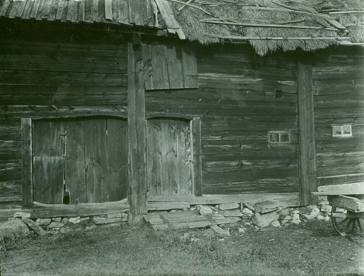 En ladugård med skiftesverk och stråtak.