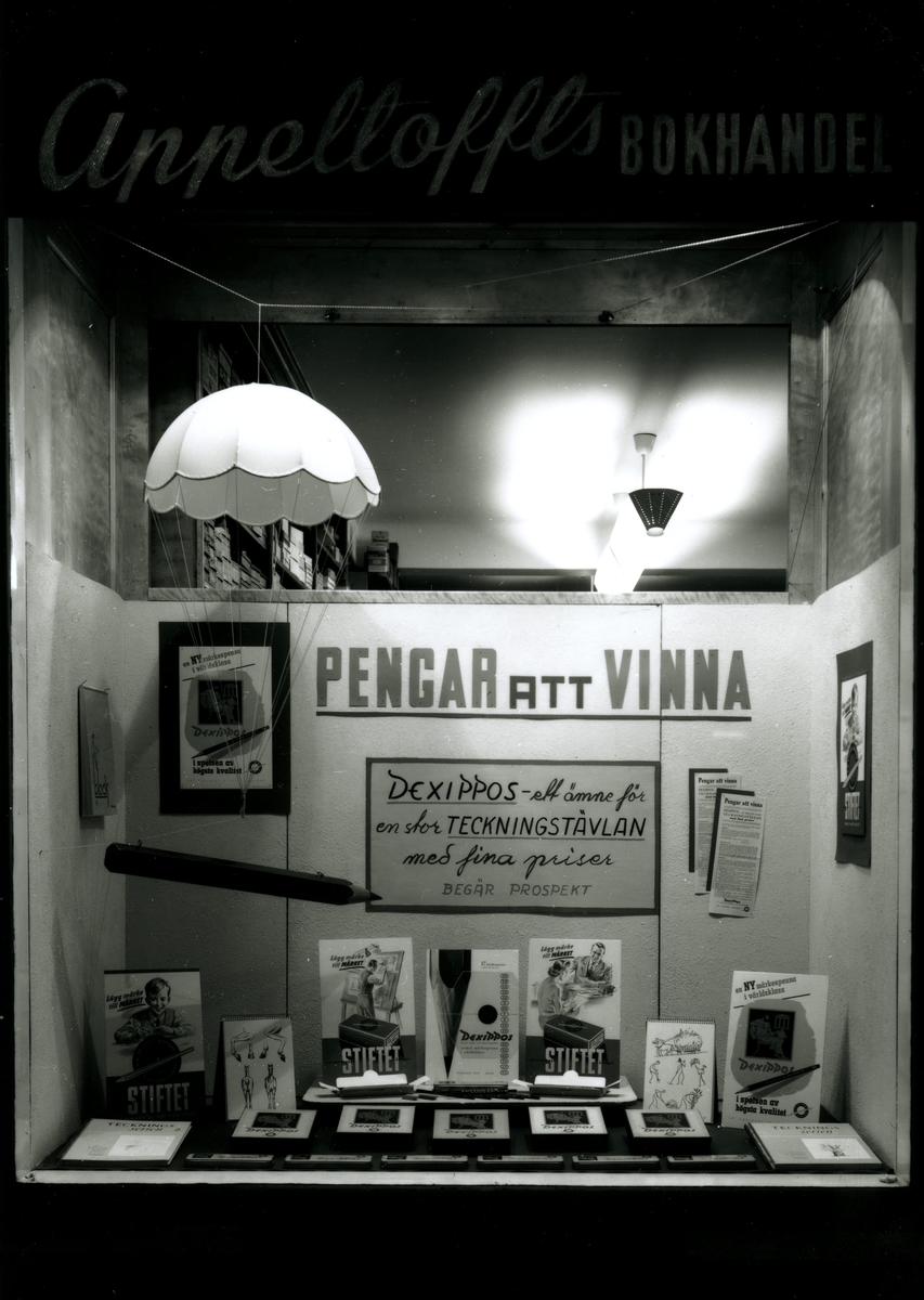 Skyltfönster hos Appeltoffts bokhandel.