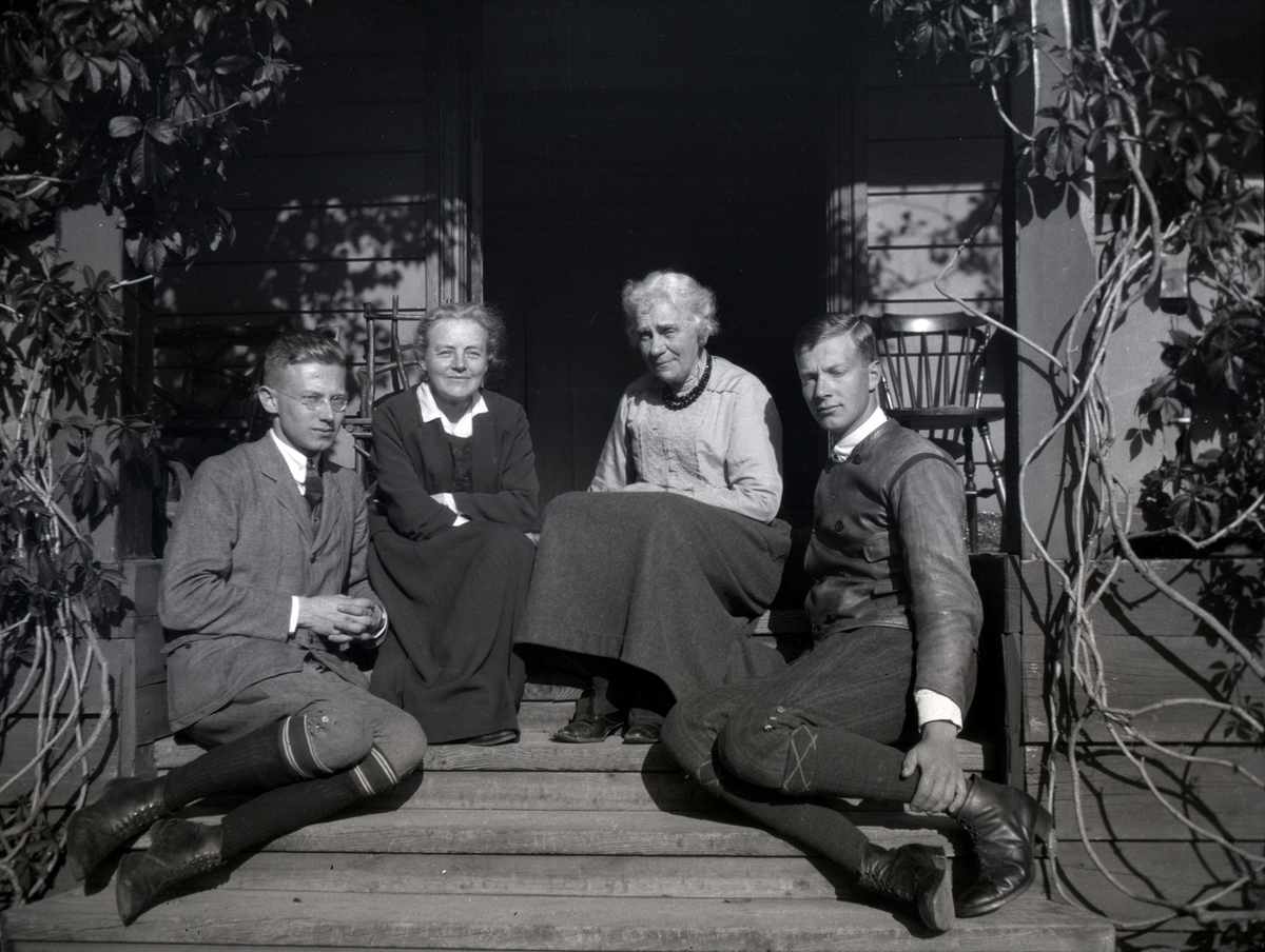 Från vänster: Gustaf Seidler, Nina Hammarskjöld, Ada Rydström och Kurt Seidler på verandan vid Segersgärde.