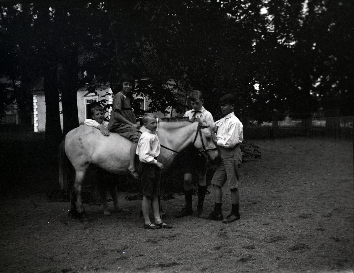 Sven, Sigrid på hästen Stumpan, Tore, Hans och Lars. Sigrid var krigsbarn från Tyskland, hon kom till Tuna efter första världskriget (1920 talet). Dotter till Hugo Hammarskjölds bekant David Carlson i Stettin, Sv Pommern.
