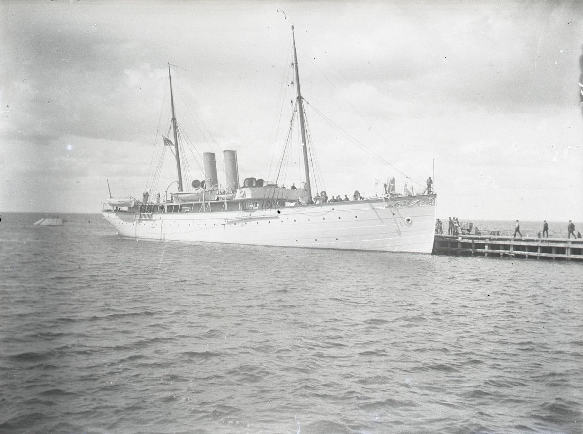 Oskar II:s jakt Drott. Möjligen är bilden tagen i Borgholm 1902 under den resa kronprinsparet Gustav och Victoria företog på jakt efter en plats att anlägga en bostad som skulle vara mer tjänlig för Viktorias luftrör än Stockholms slott eller Tullgarn. Det var under denna resa man fann platsen för Solliden.