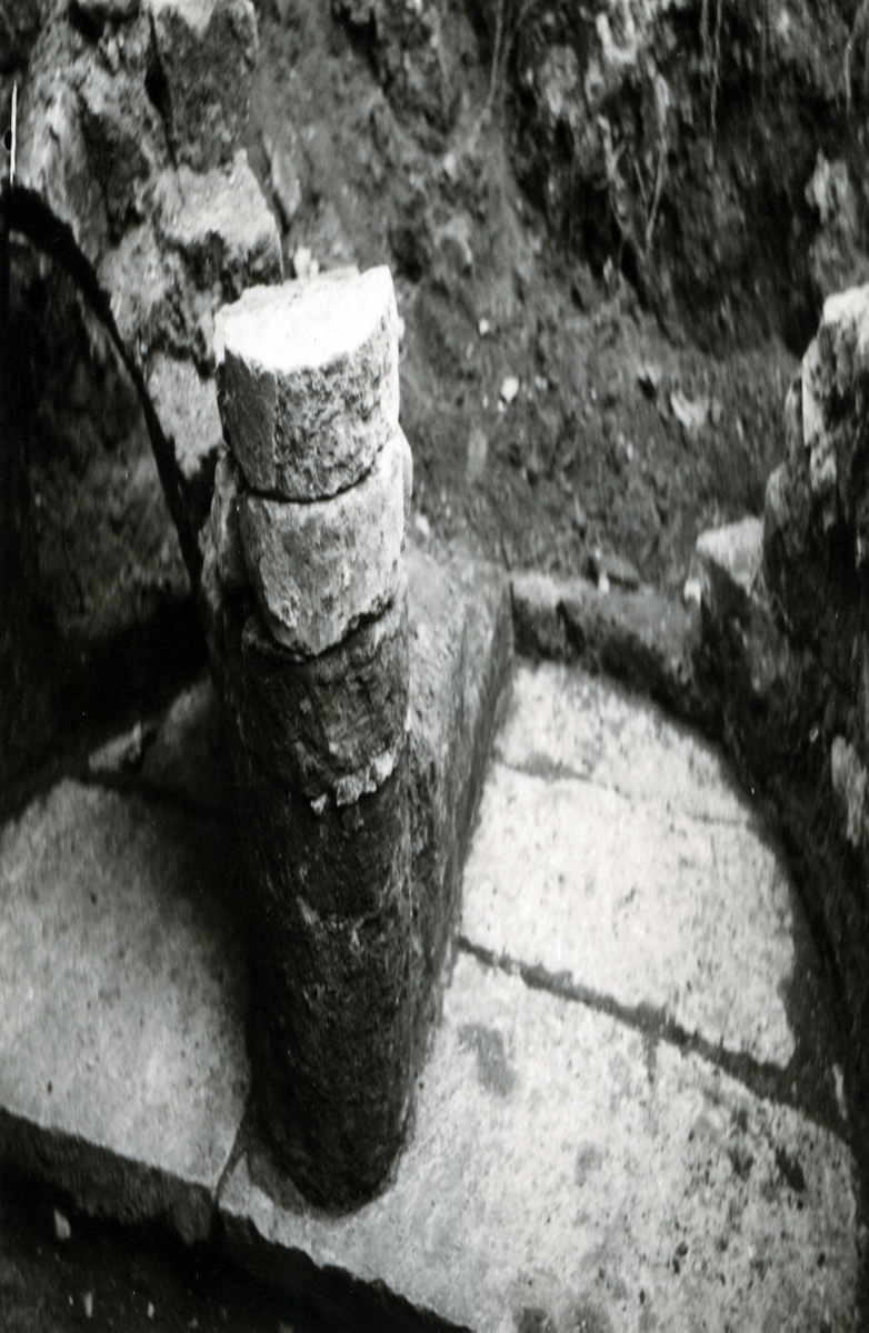 Den här bilden visar en trappa strax innanför gamla grinden vid vaktmästarebostaden 1942.